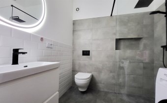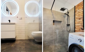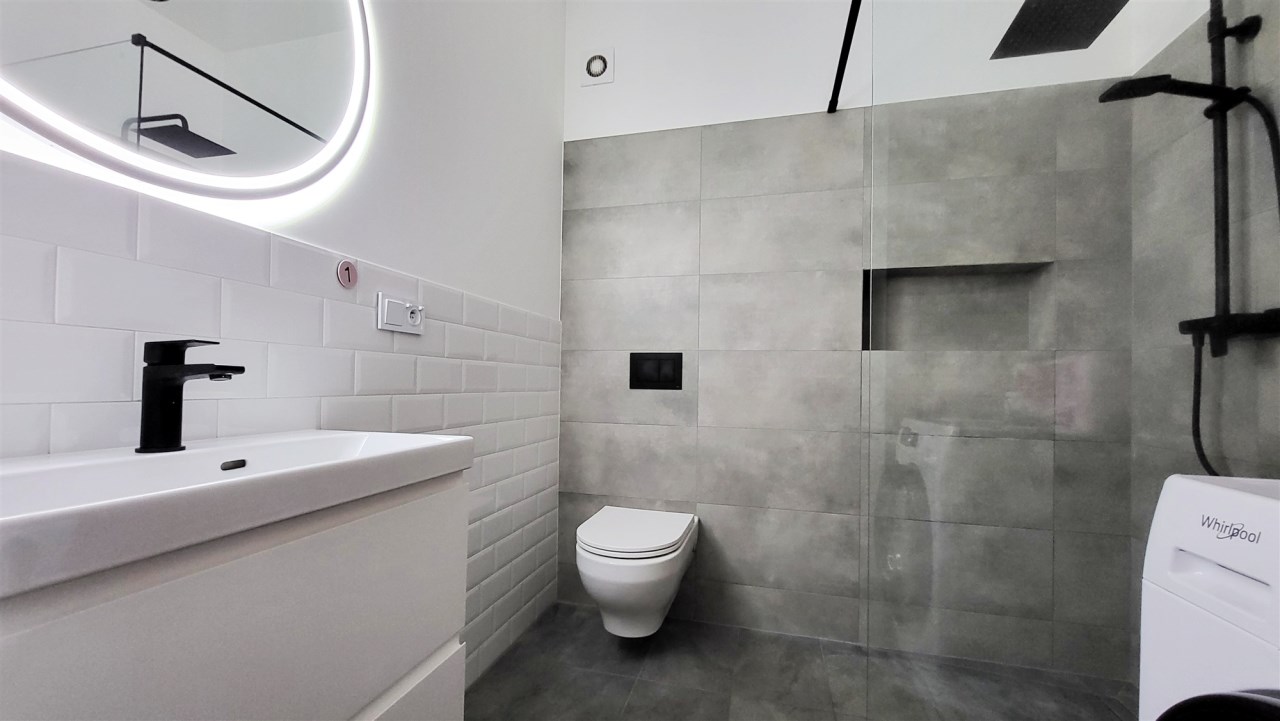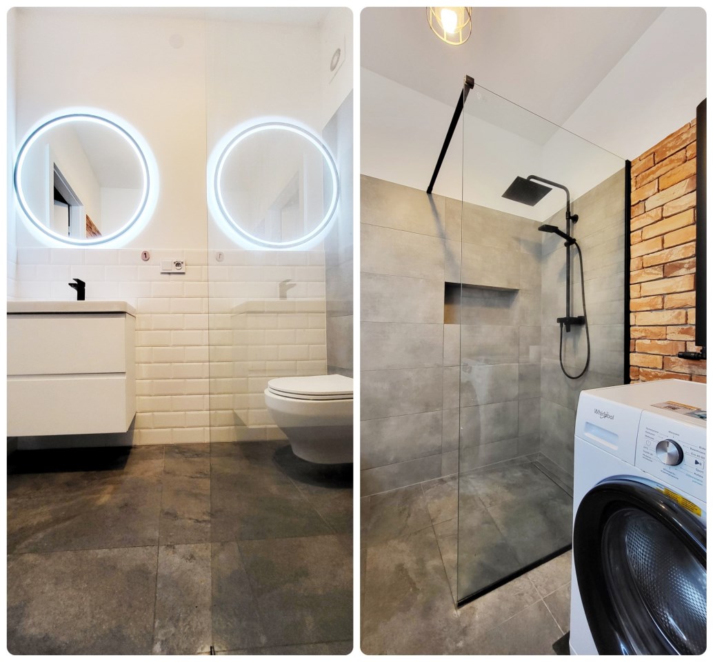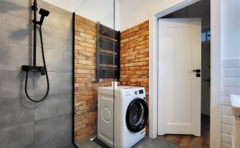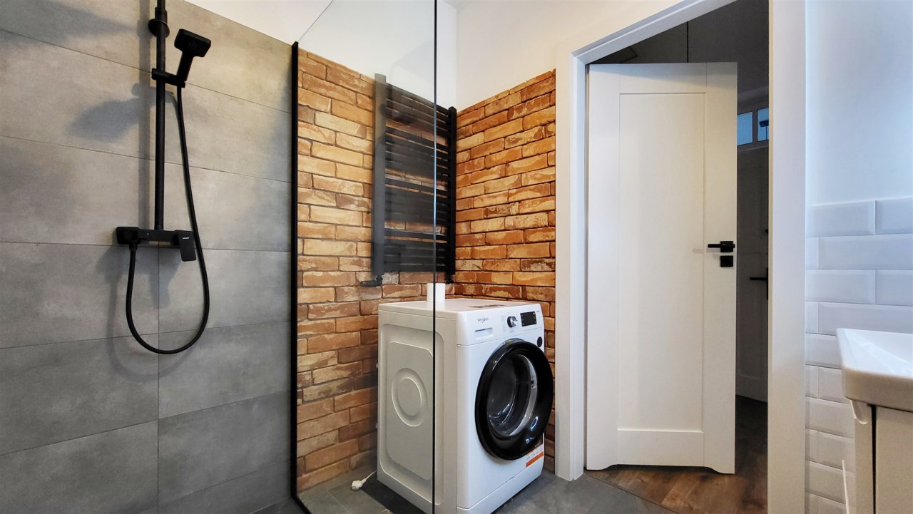 - łazienka z toaletą i pralką,